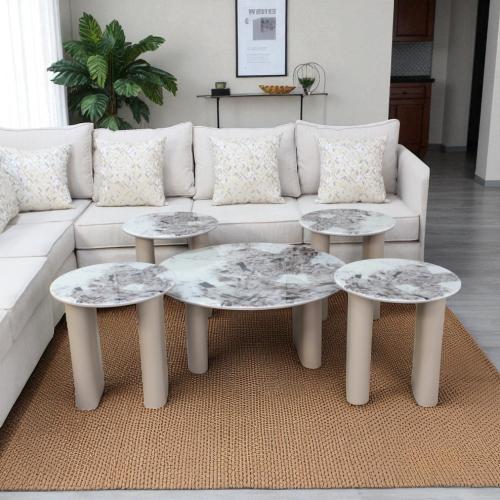 تتنوع اشكال طاولات خدمه بين طقم طاولات كبير أو صغير، حيث يتوفر بعض الطقوم ضمن 6 طاولات كاملة تناسب المساحات الواسعة.